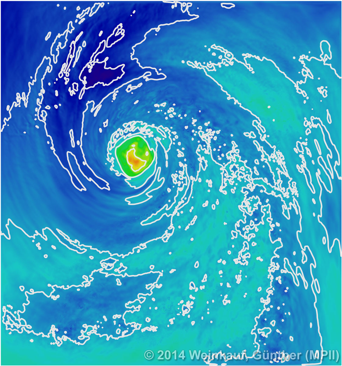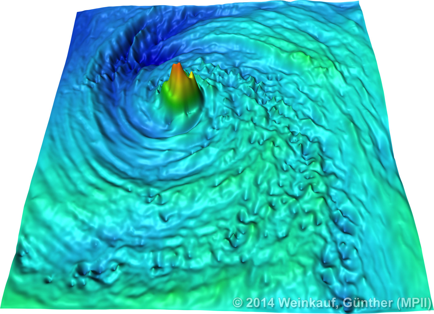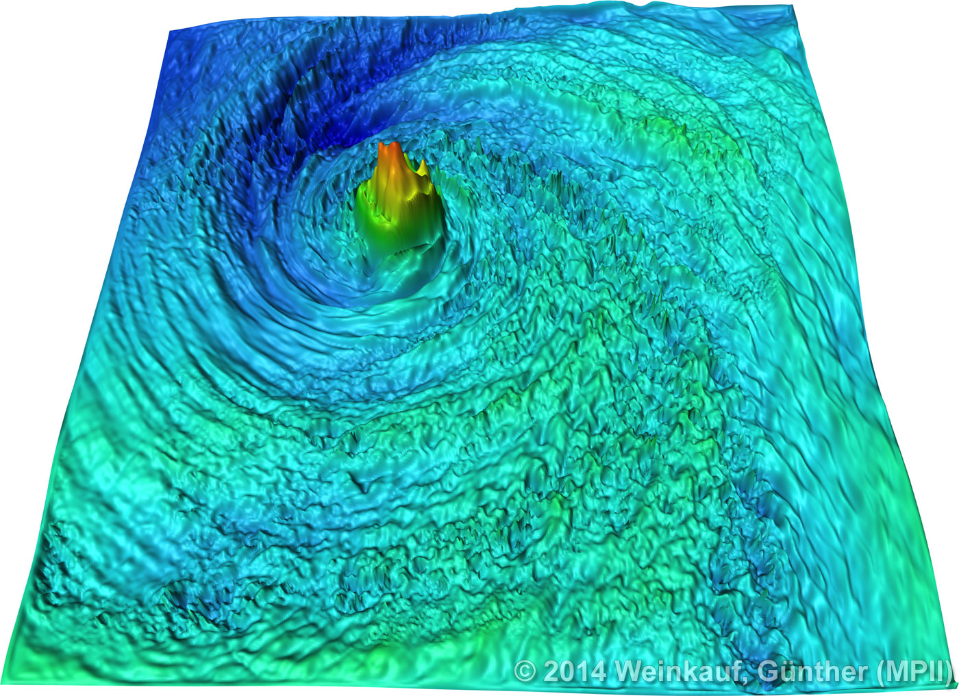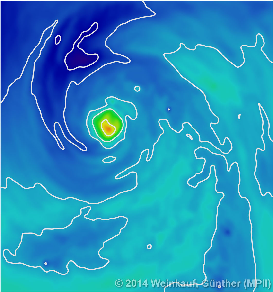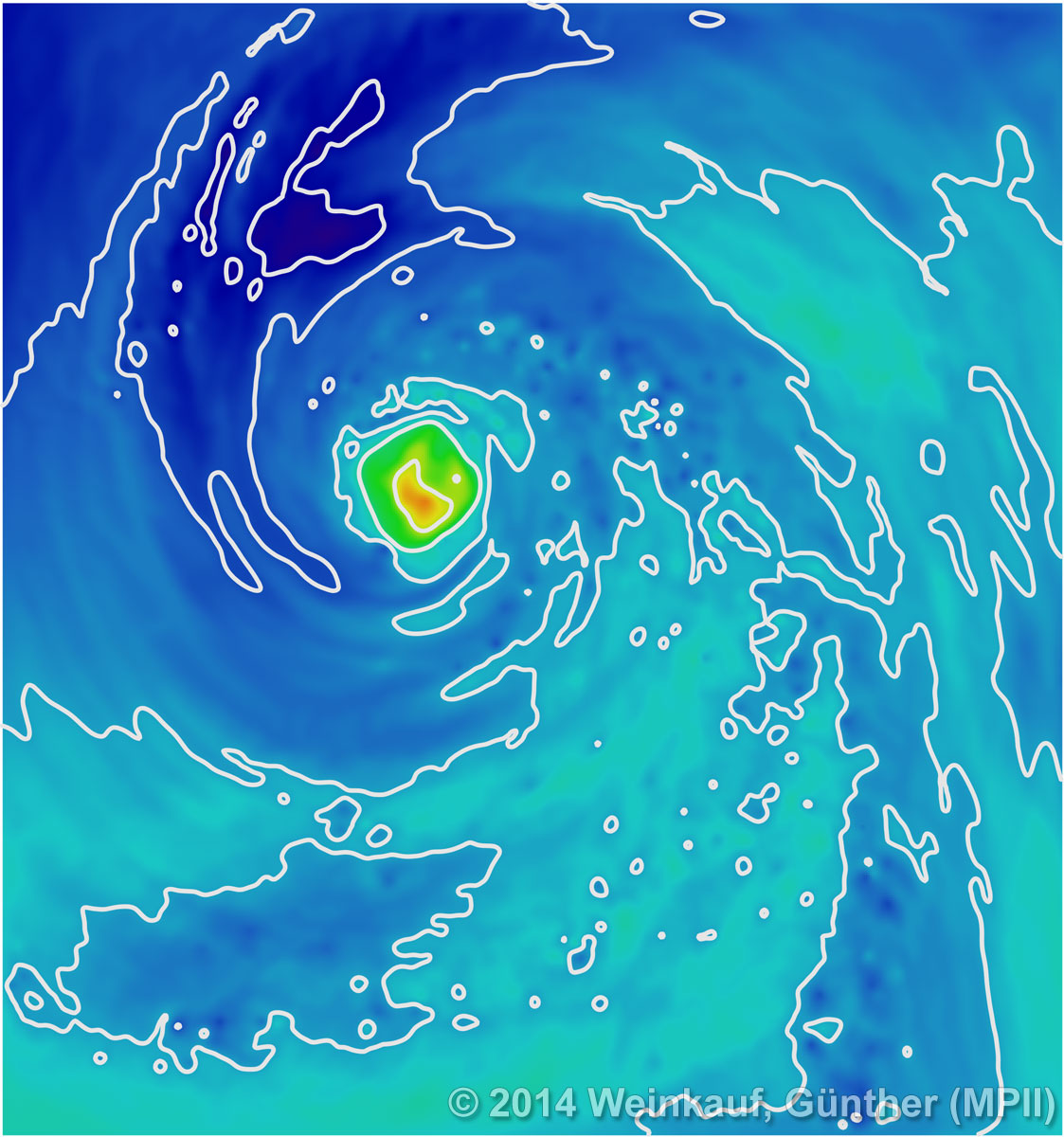 Data acquisition, numerical inaccuracies, and sampling often introduce noise in measurements and simulations. Removing this noise is often necessary for efficient analysis and visualization of this data, yet many denoising techniques change the minima and maxima of a scalar field. For example, the extrema can appear or disappear, spatially move, and change their value. This can lead to wrong interpretations of the data, e.g., when the maximum temperature over an area is falsely reported being a few degrees cooler because the denoising method is unaware of these features. Recently, a topological denoising technique based on a global energy optimization was proposed, which allows the topology-controlled denoising of 2D scalar fields. While this method preserves the minima and maxima, it is constrained by the size of the data. We extend this work to large 2D data and medium-sized 3D data by introducing a novel domain decomposition approach. It allows processing small patches of the domain independently while still avoiding the introduction of new critical points. Furthermore, we propose an iterative refinement of the solution, which decreases the optimization energy compared to the previous approach and therefore gives smoother results that are closer to the input. We illustrate our technique on synthetic and real-world 2D and 3D data sets that highlight potential applications. | Fast and Memory-Efficient Topological Denoising of 2D and 3D Scalar Fields IEEE Transactions on Visualization and Computer Graphics (Proc. IEEE VIS) 20(12), December 2014 |