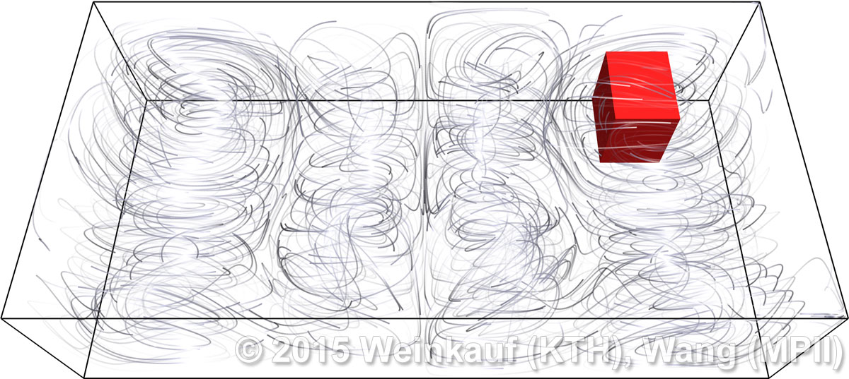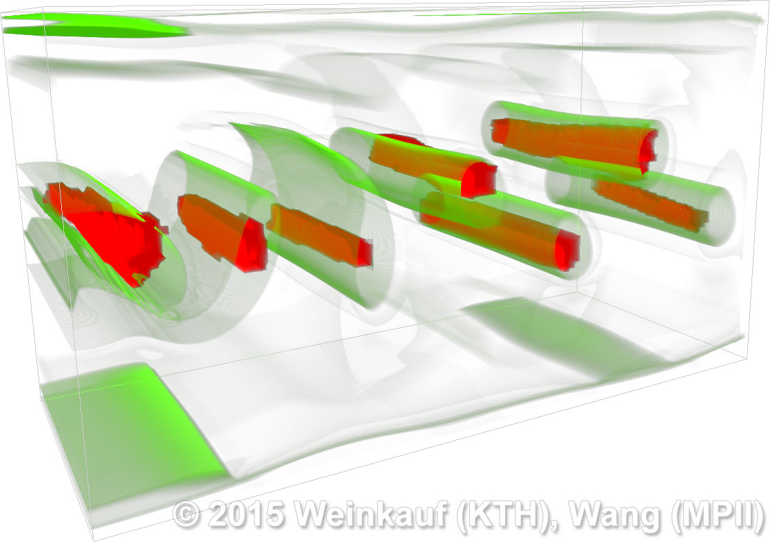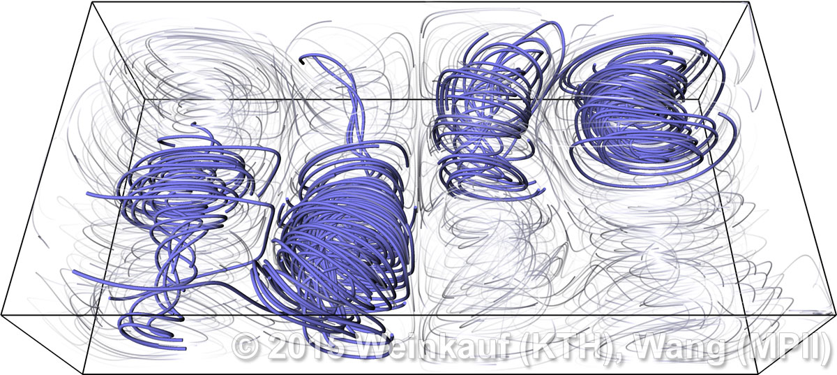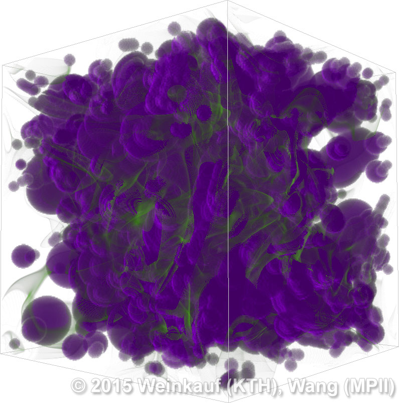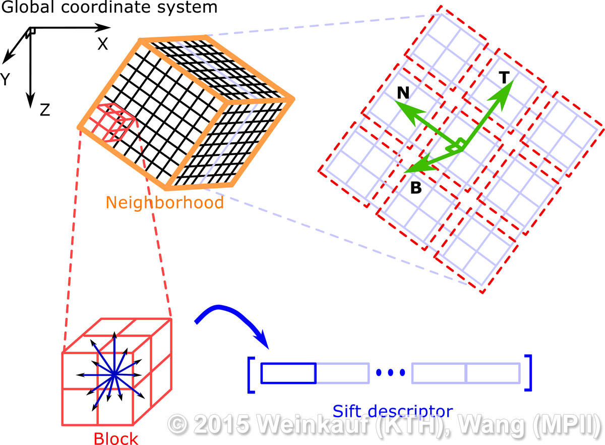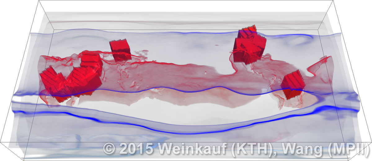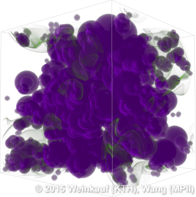 We present an approach to pattern matching in 3D multi-field scalar data. Existing pattern matching algorithms work on single scalar or vector fields only, yet many numerical simulations output multi-field data where only a joint analysis of multiple fields describes the underlying phenomenon fully. Our method takes this into account by bundling information from multiple fields into the description of a pattern. First, we extract a sparse set of features for each 3D scalar field using the 3D SIFT algorithm (Scale-Invariant Feature Transform). This allows for a memory-saving description of prominent features in the data with invariance to translation, rotation, and scaling. Second, the user defines a pattern as a set of SIFT features in multiple fields by e.g. brushing a region of interest. Third, we locate and rank matching patterns in the entire data set. Experiments show that our algorithm is efficient in terms of required memory and computational efforts. | Multi-field Pattern Matching based on Sparse Feature Sampling IEEE Transactions on Visualization and Computer Graphics (Proc. IEEE VIS) 22(1), January 2016 |