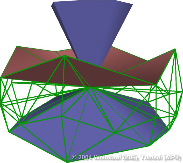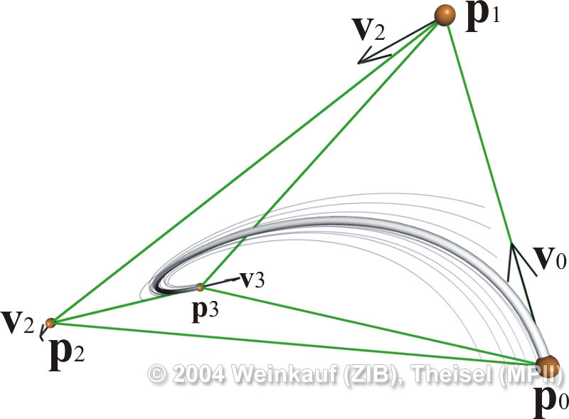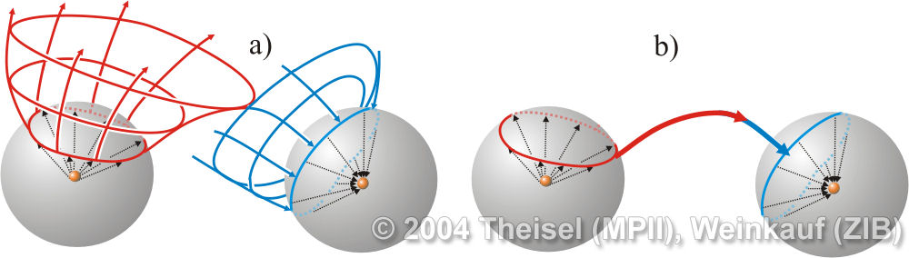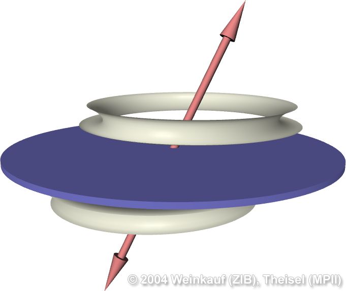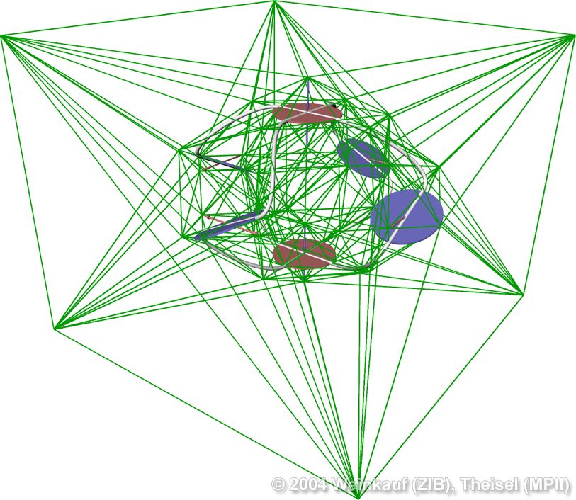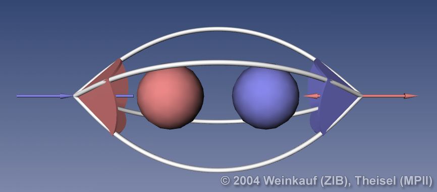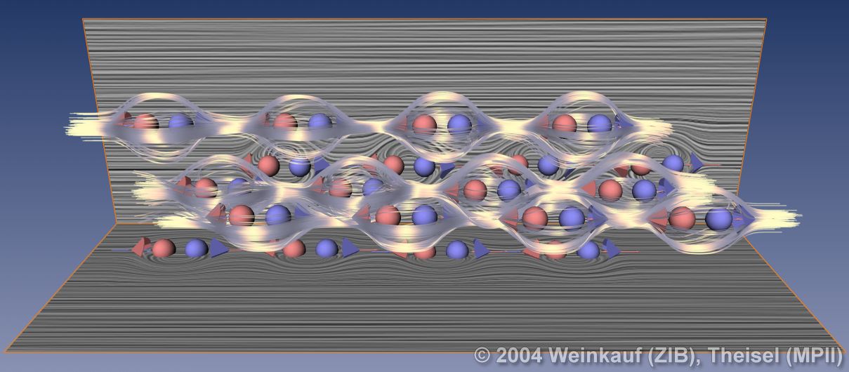 We present the first algorithm for constructing 3D vector fields based on their topological skeleton. The skeleton itself is modeled by interactively moving a number of control polygons. Then a piecewise linear vector field is automatically constructed which has the same topological skeleton as modeled before. This approach is based on a complete segmentation of the areas around critical points into sectors of different flow behavior. Based on this, we present the first approach to visualizing higher order critical points of 3D vector fields. | Topological Construction and Visualization of Higher Order 3D Vector Fields Computer Graphics Forum (Proc. Eurographics) 23(3), September 2004 |
