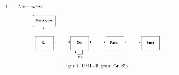 - Rita ett UML-klassdiagram för en kö. Köklassen implementerar följande