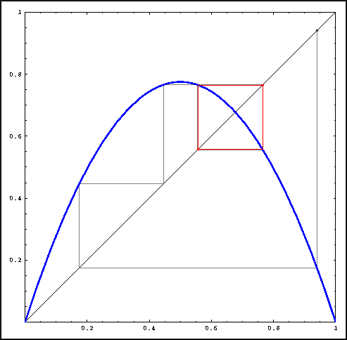 intuitive manner, called the logistic map. It is defined as f(x) = ax(1-x). By choosing different values for the coefficient a and the initial value of the parameter x we obtain different behaviours.