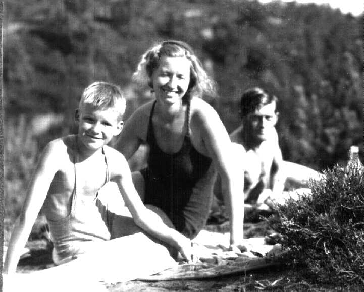 | Rune Sörnäs (#1521) with aunt Inga-Märta Bryneson (#156). In the background is a man that gave Inga-Märtha a lot of attention that she did not care about... Picture taken at the end of the 1930's. |