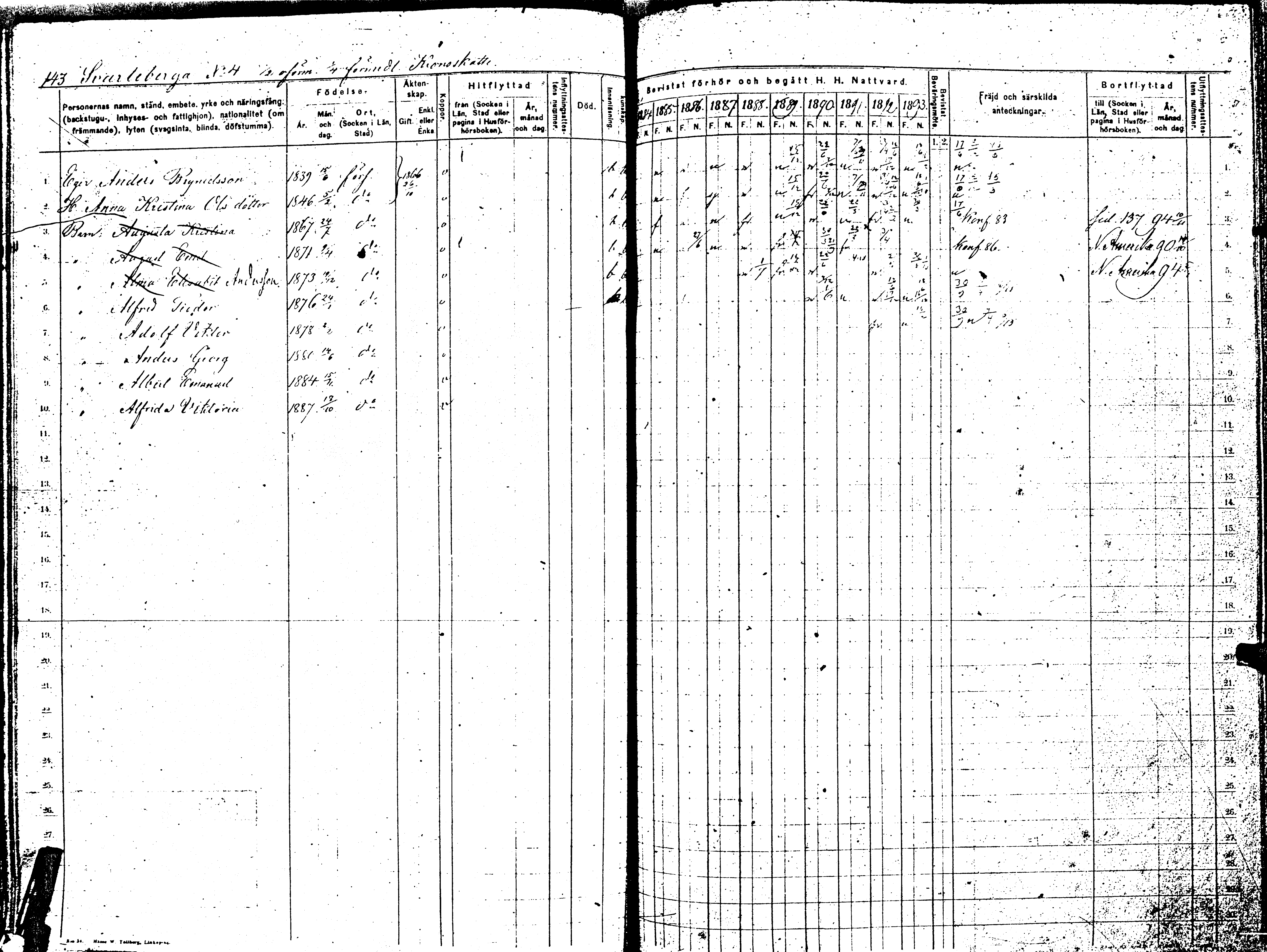 Church register with Anders (#1), Anna Kristina (#1A) and their eight children.